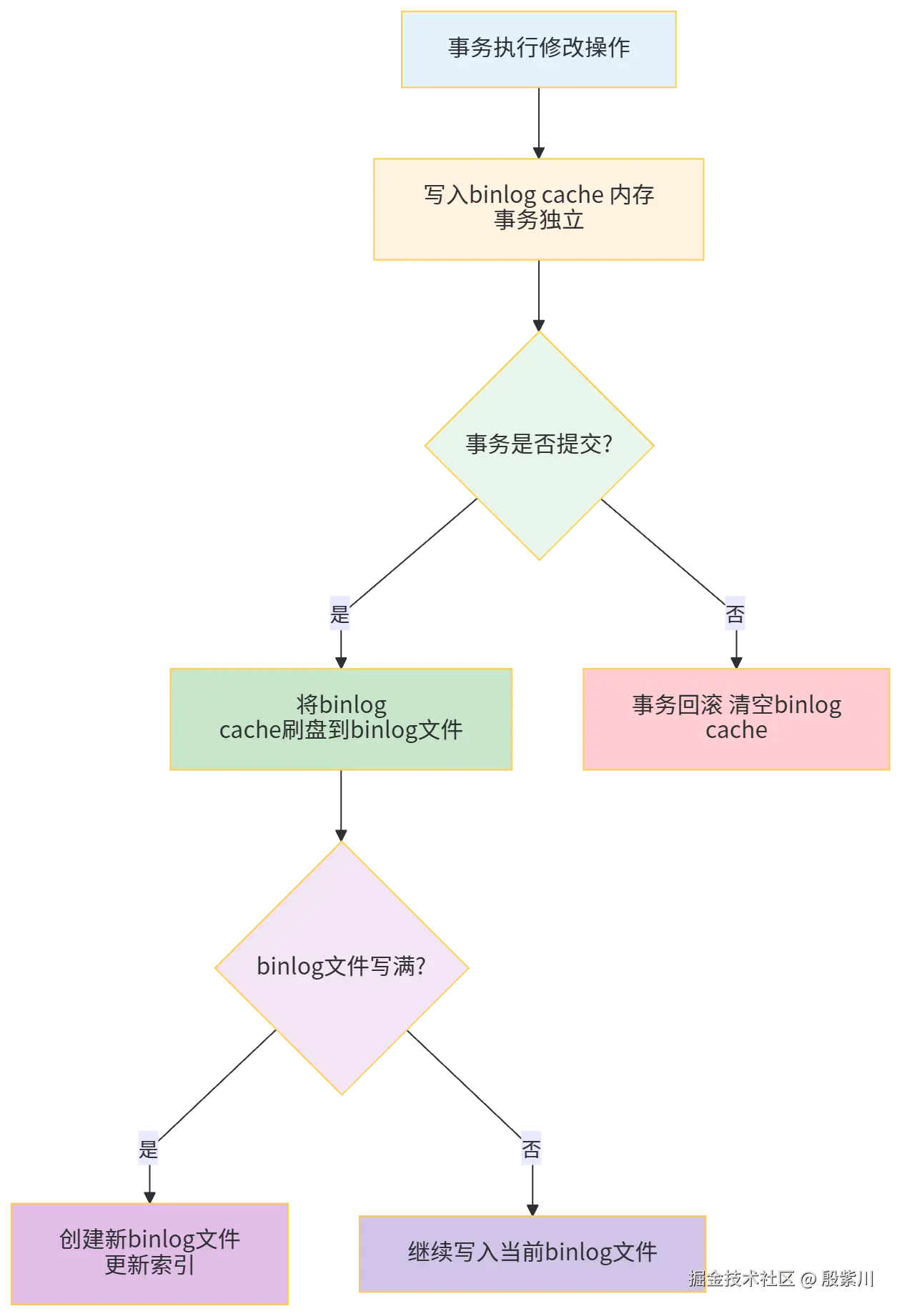 - binlog(二进制日志):相当于“监控录像”,完整记录所有数据变更操作,不仅能用来恢复数据,还能同步给从库,保证“所有操作可追溯、可复制”(主从同步、数据备份)。