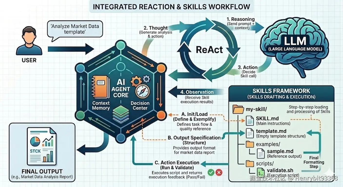 Skill 可以携带可执行脚本,Agent 捕获模型的执行意图后,真正在系统层面运行命令,实现从”说”到”做”的跨越。