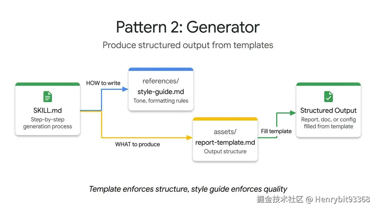 examples下可以放置多份md文件,其用于控制模型输出结构,需要在SKILL.md中引用约定其用途,可以通过设置多个分支逻辑,启用不同的输出结构md,这可以保证模型输出的结构符合要求。