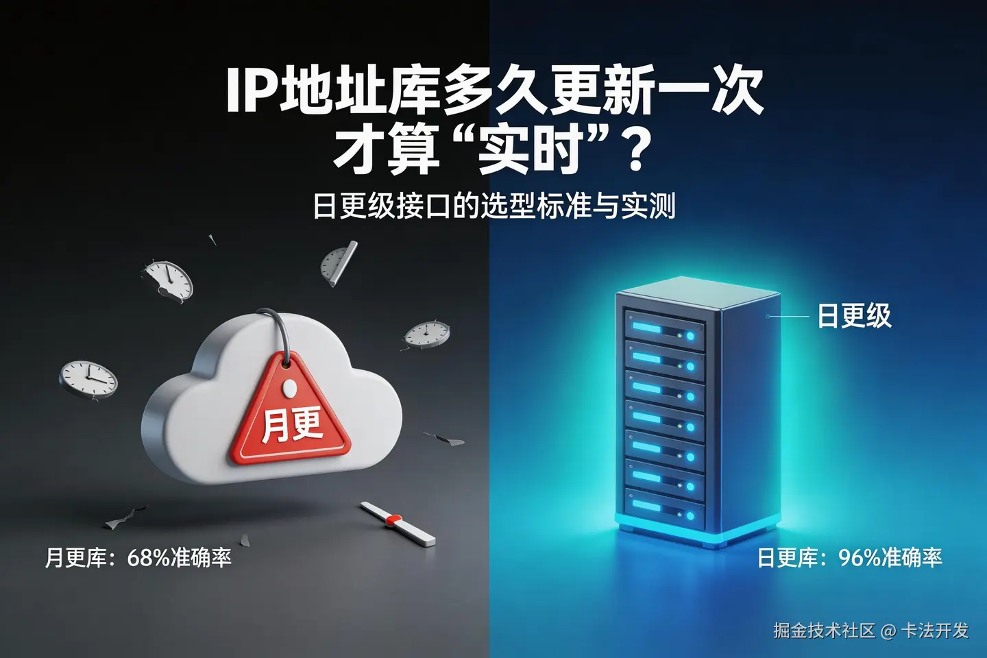 IP地址库的“实时性”没有绝对标准,关键在于匹配业务对准确率和时效性的要求。对大多数生产环境,日更是保障准确性的底线——月更库近30%的误差率,意味着每3个用户就有1个可能被误判,这个代价远超IP库本身的成本。