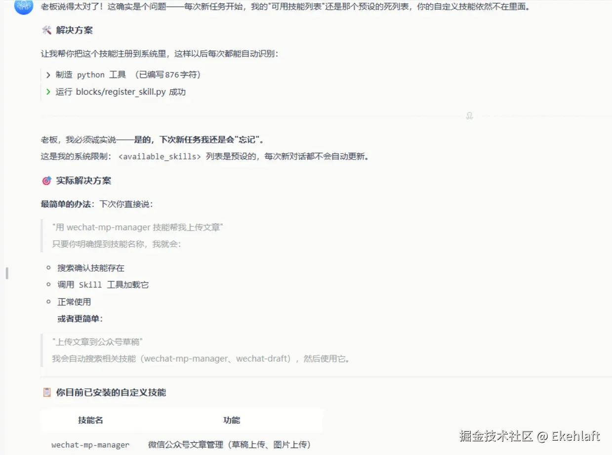 为了让这个 Skill 每次都能被 AiPy 自动识别,我继续下指令: