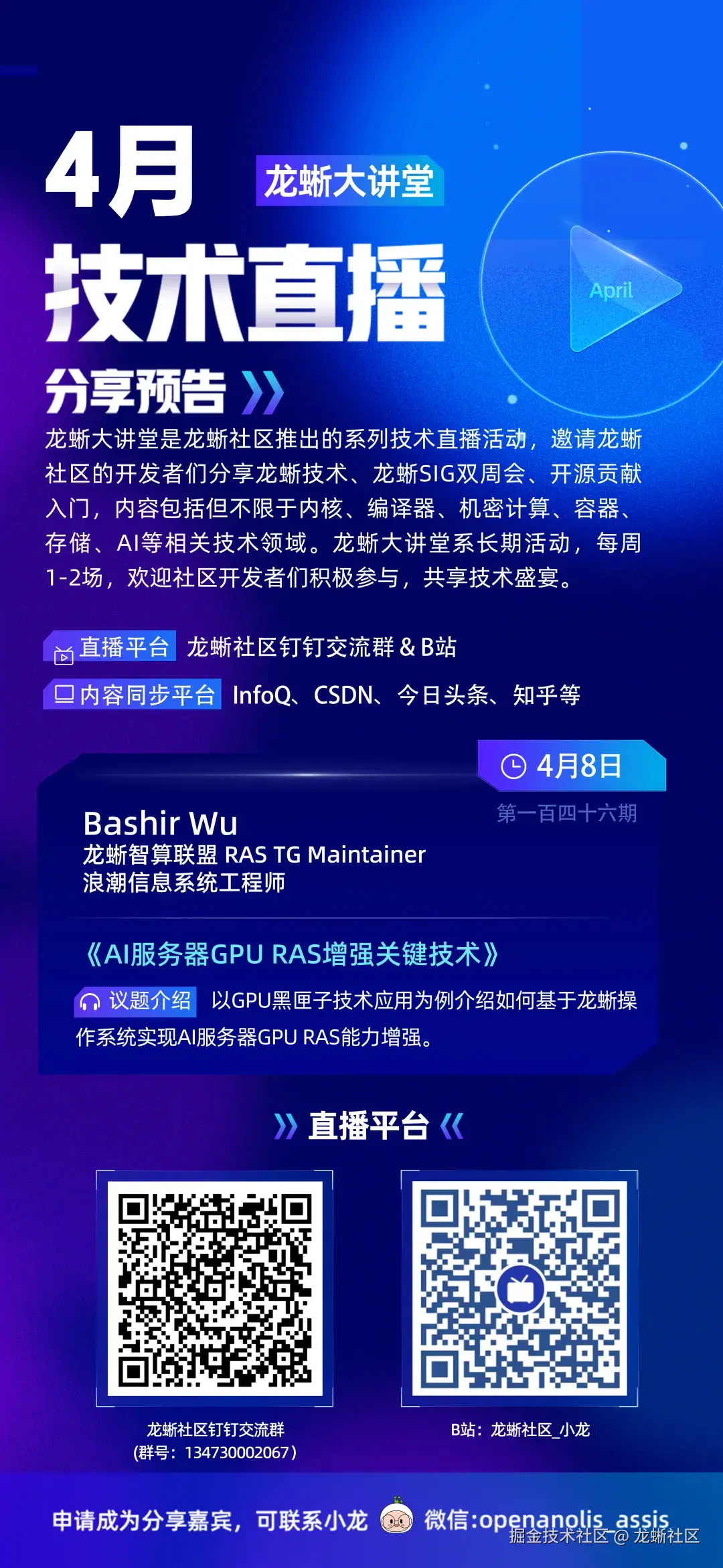 「龙蜥大讲堂」精彩预告来了,点击下方海报抢先了解。欢迎提前进群,立即预约锁定这场 AI 关键技术分享!