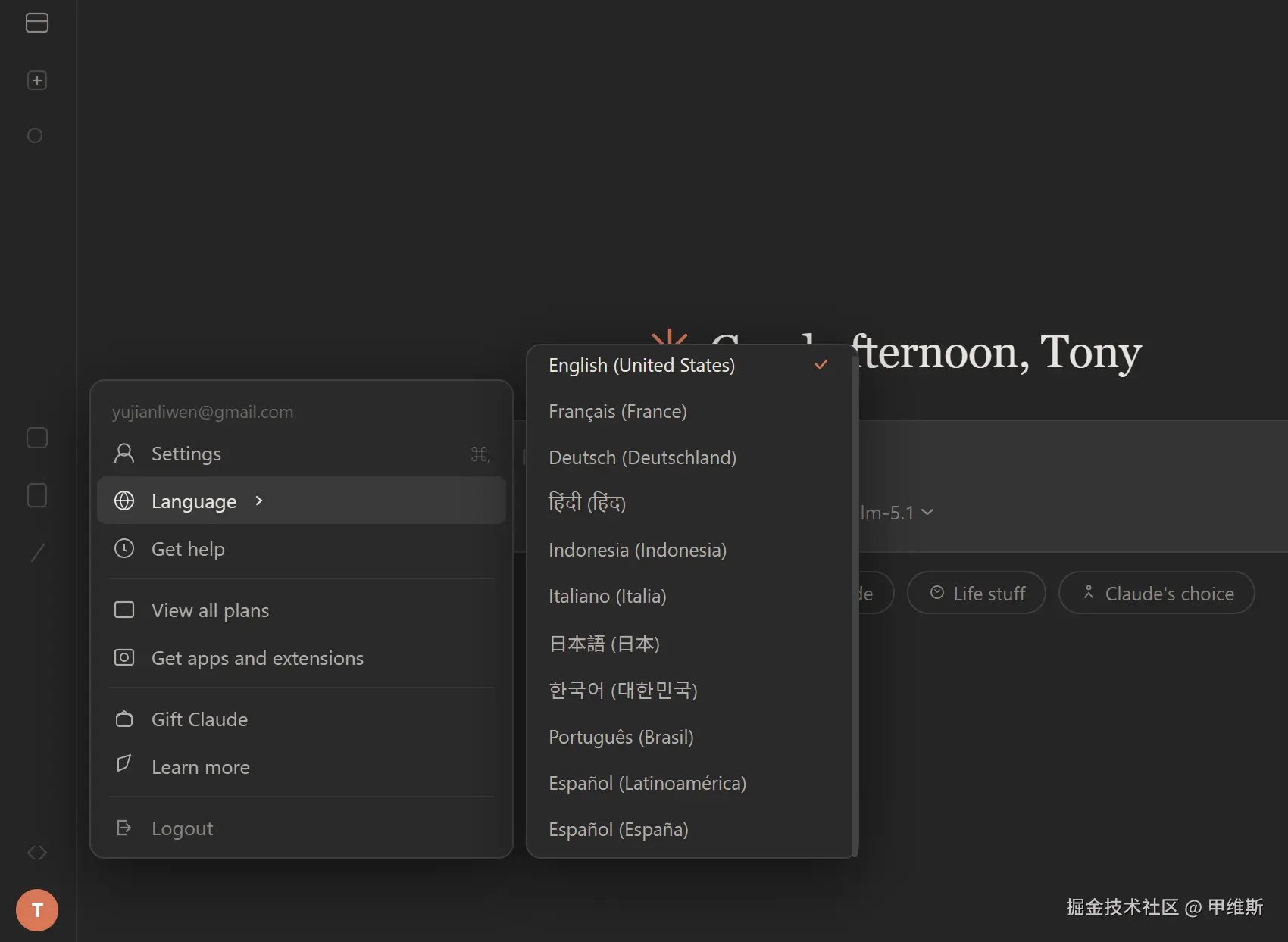 这里主要是靠点击头像弹出菜单,然后移动到语言,又弹出二级菜单。看 AI 能否还原这种联动效果。
