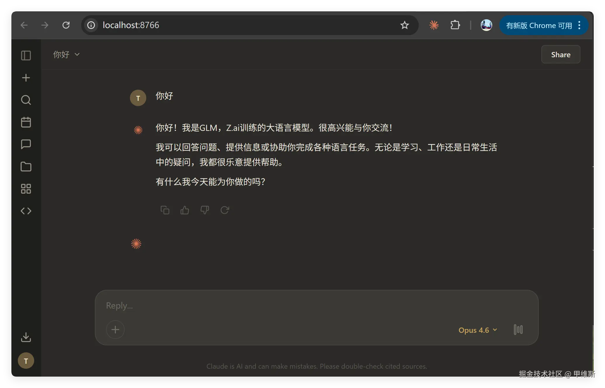 这是用户发送问题,模型返回后的截图。就是正常的对话界面!