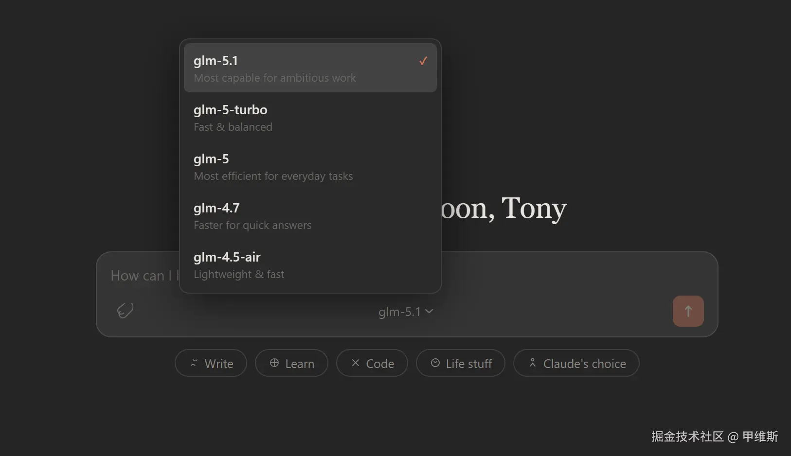 整体结构和风格还是比较不错的。没有出现明显的混乱。只是左边的图标有点小问题,以及 glm-5.1 位置有点问题。