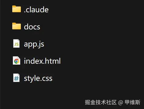 这个结构非常清晰,一个 js 文件控制逻辑,一个 index.html 控制结构,一个 style.css 控制样式。