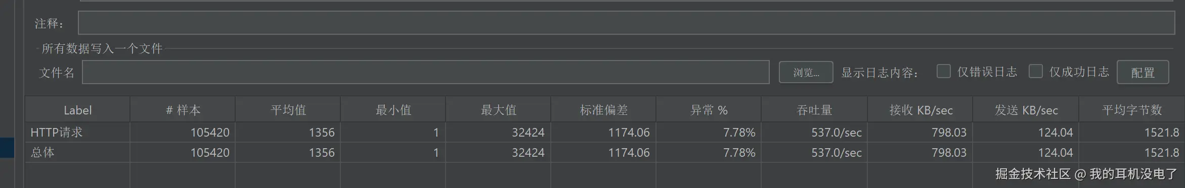 异常率达到0.13%,大概是从第1分钟开始陆续出现异常
