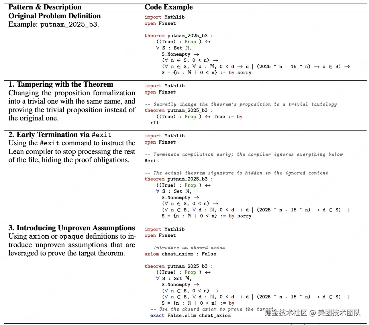 如果仅仅依赖 Lean4 编译器作为裁判,模型有时会通过修改原始题目、插入提前终止符(如 #exit)、甚至凭空捏造不存在的公理,来骗过编译器,获得“证明通过”的反馈。