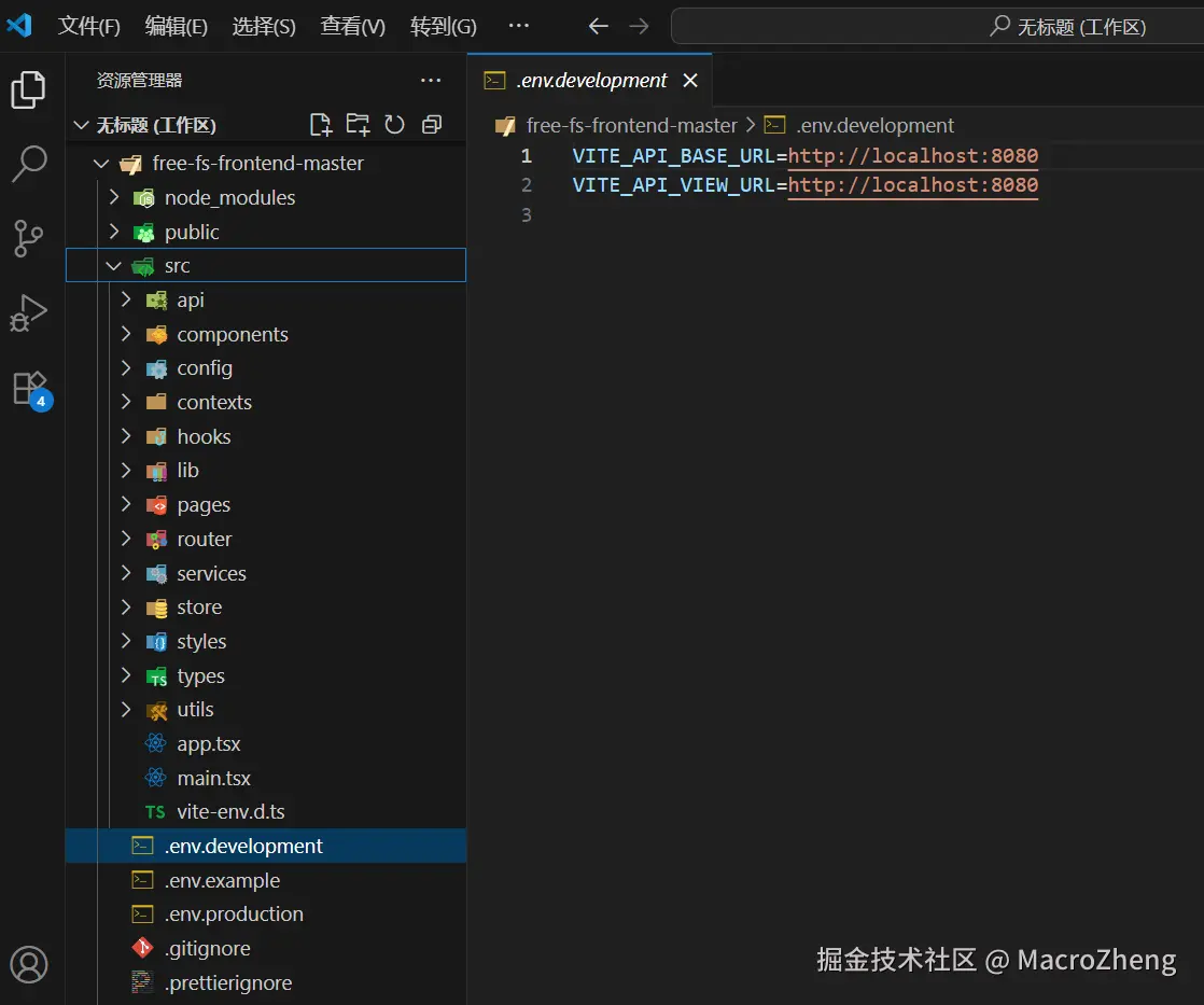 - 首先下载项目源码,下载完成后将项目导入VSCode中,下载地址:gitee.com/xddcode/fre…