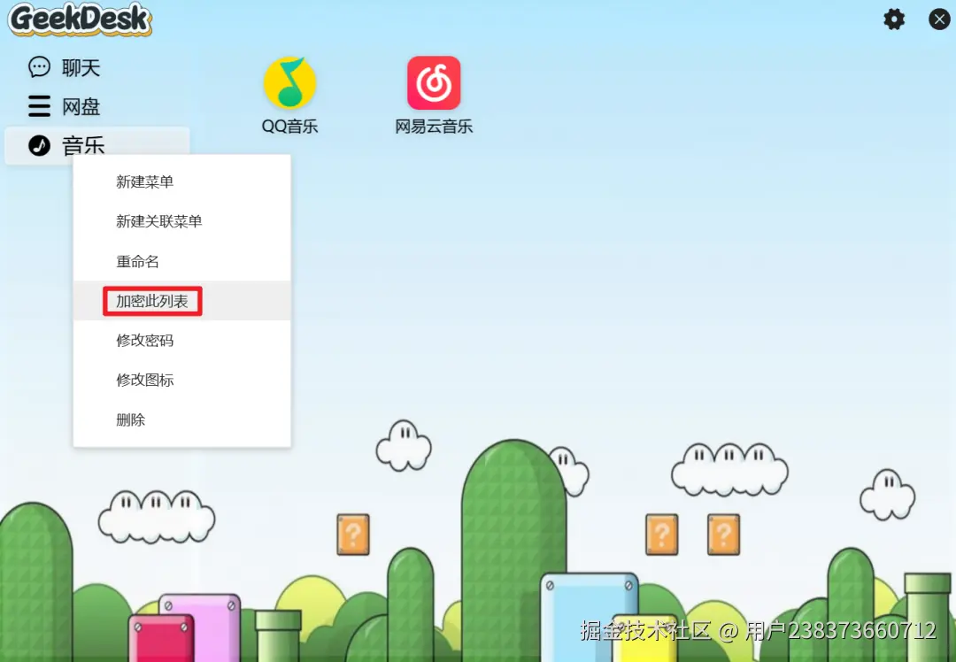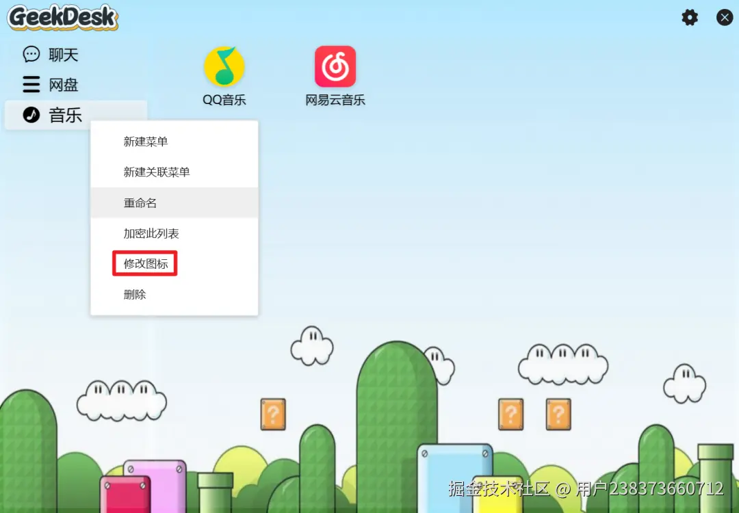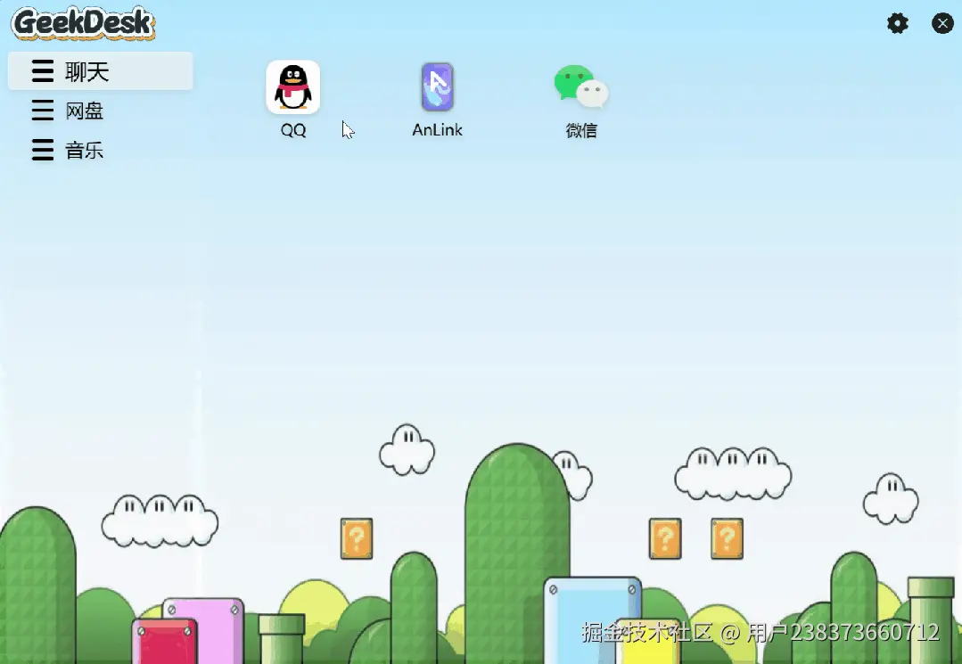 GeekDesk是一款颜值超高的快速启动软件,我们可以把软件的快捷图标拖入到GeekDesk中,然后只要单击即可启动软件。在软件的左边栏,可以对软件进行分类,比如我分类为聊天、网盘、音乐。