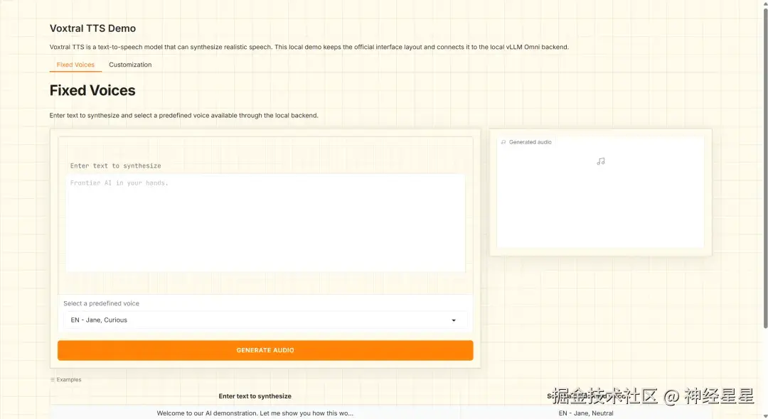 目前,HyperAI超神经官网已上线了「Voxtral 4B TTS 2603 多语言语音生成」,快来试试吧~