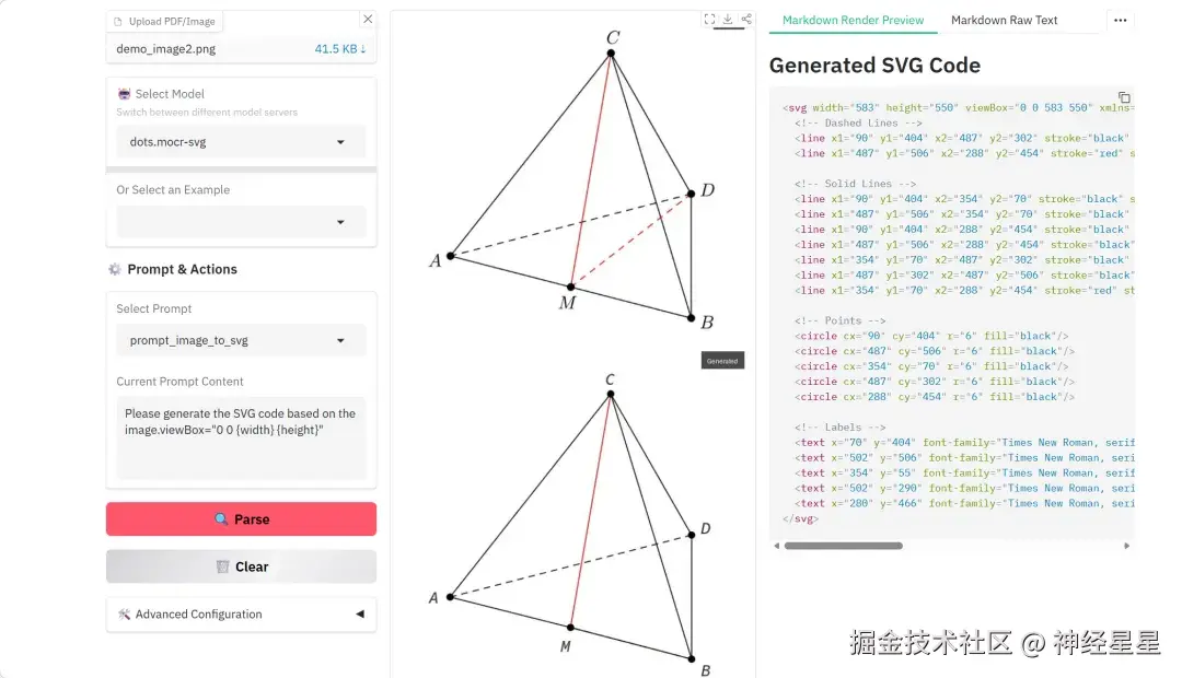 dots.mocr 是由华中科技大学与小红书 HI-Lab 于 2026 年 3 月联合发布的一种多模态 OCR 文档解析模型。在同等规模的模型中,它在标准多语言文档解析任务上达到了当前最先进(SOTA的性能。除了文档解析之外,dots.mocr 还擅长将结构化图形(例如图表、UI 布局、科学图示等)直接转换为 SVG 代码。