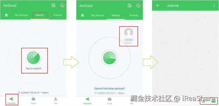 要通过 AirDroid 的 Nearby 功能将文件从 iPhone 共享到 Android:
