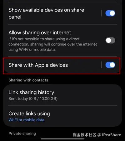 事实上,在 iPhone 和 Android 设备之间共享文件时,需要同时使用 AirDrop 和快速共享。此功能的工作原理是让快速共享能够“调用” AirDrop 协议。