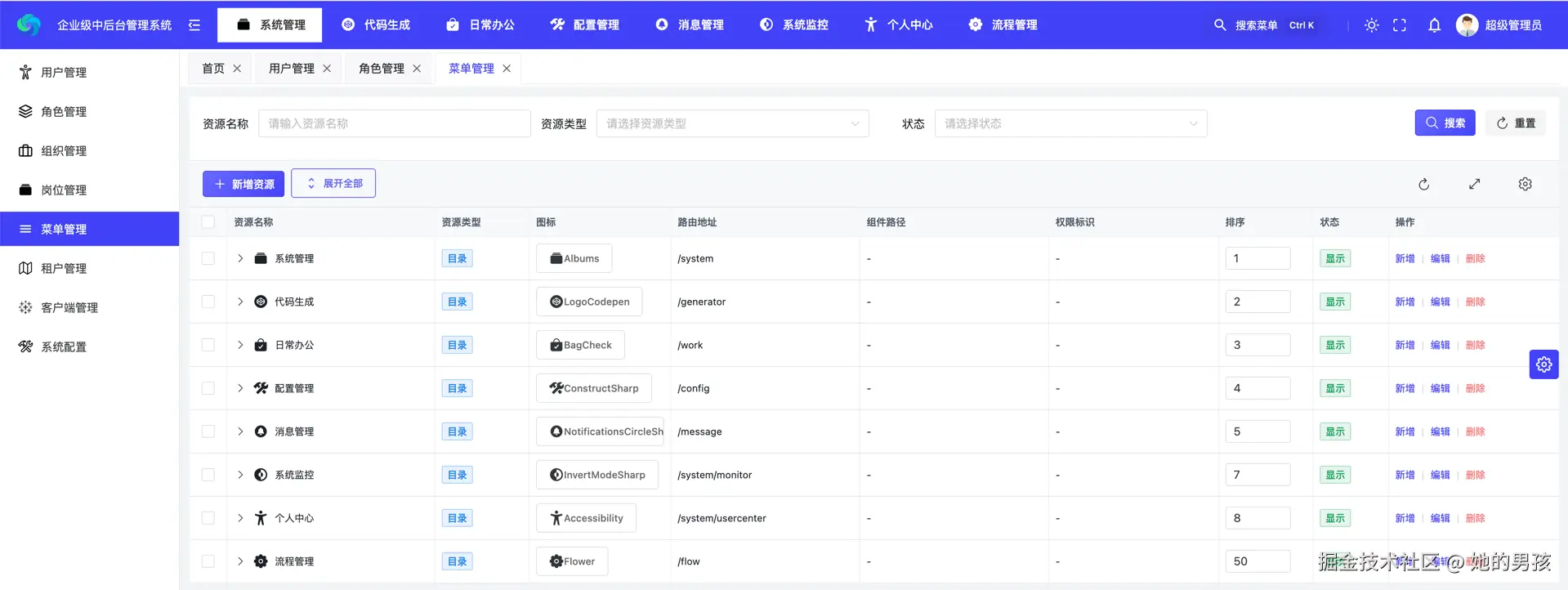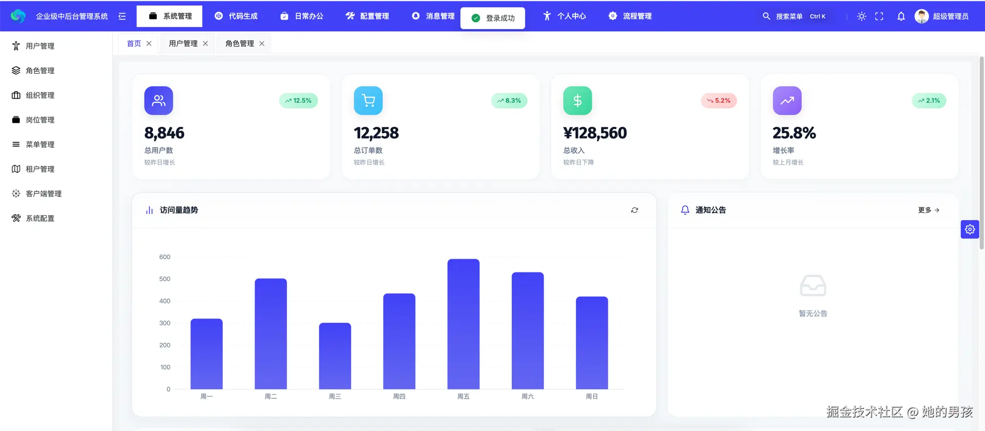 - 👥 完善的多租户支持:内置完整的多租户体系,支持数据隔离方案