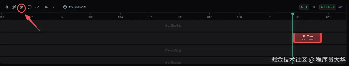 想剪掉某一段?先在时间轴上定位,然后用分割工具切开再删。