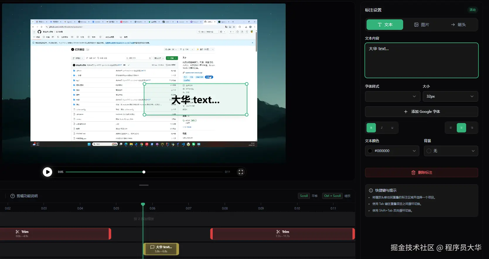 这是 OpenScreen 最核心的编辑功能。