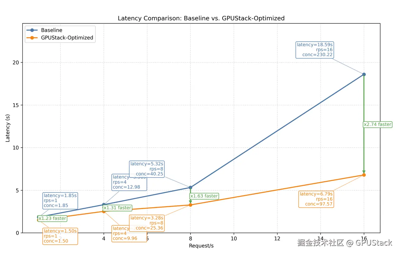 | 基线 | vLLM 默认配置 | 2.62s | 1.00x |