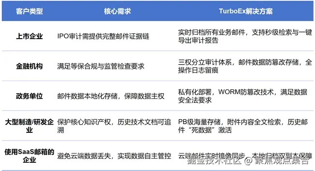 无论是应对IPO审计、满足等保合规,还是保护核心知识产权、激活历史数据价值,TurboEx邮件归档系统都能为您提供坚实的技术支撑。