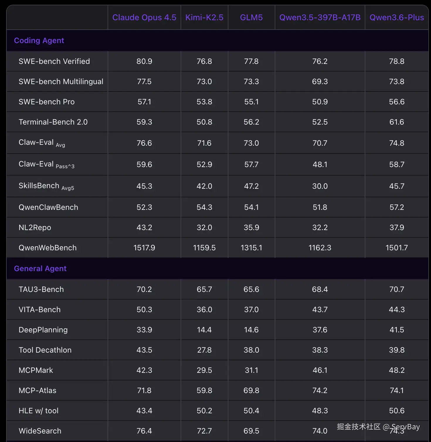 对比上一代,Qwen3.6-Plus 表现更加出色了。在 SWE-bench 系列真实编程任务、Terminal-Bench 2.0 终端编程测试以及 NL2Repo 长程编程任务中,它的表现已经可以正面对标 Claude 4.5 Opus,并大幅领先于 GLM-5 和 Kimi-K2.5 等同类模型。