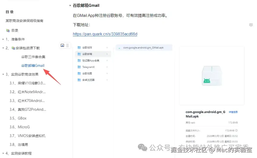 2、安卓手机直接下载Gmail安装包-(更多设备方法获取可以在公众号:Mac的实验室 回复 谷歌 )