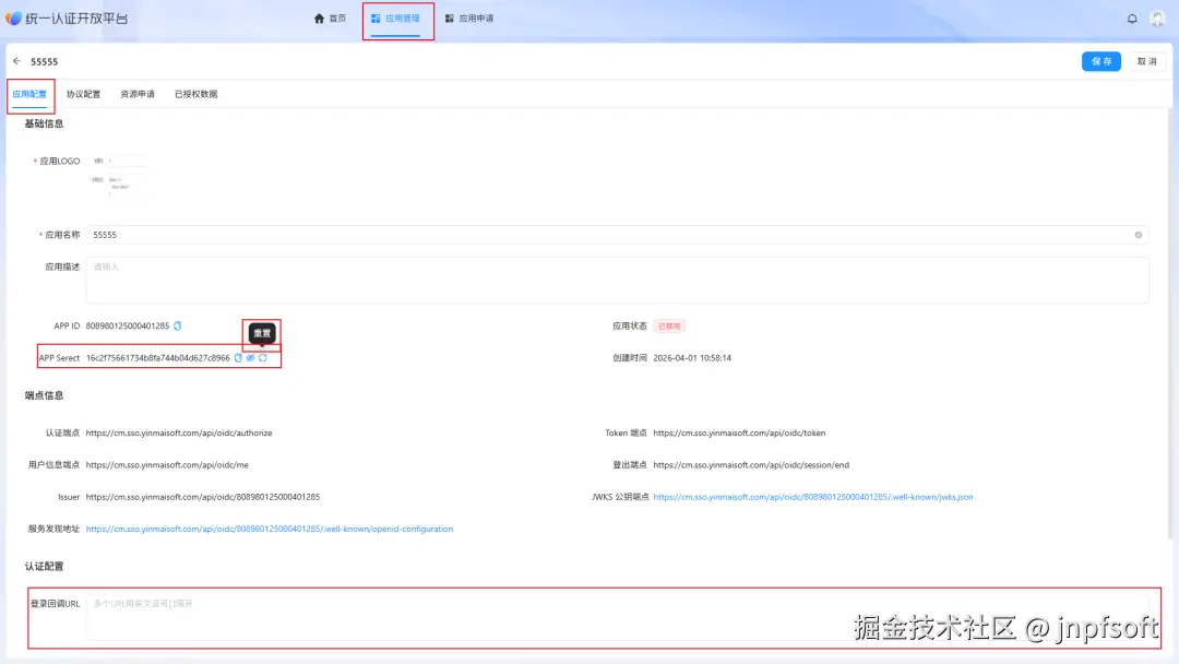 开发者登录开放平台后,点击“应用申请”,上传应用LOGO、填写应用描述及申请理由,提交后等待管理员审核;审核通过后,在“应用管理”中可重置应用密钥、修改回调地址,按需申请一般资源或敏感资源,完成集成配置。