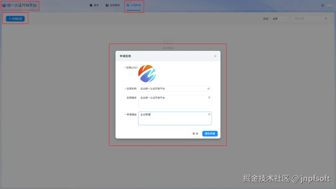 为外部开发者和合作伙伴提供自助式应用集成服务,支持OAuth2.0等协议配置,可在线申请应用接入、资源授权,实时查看审核进度与授权数据。无需人工对接,开发者即可完成应用与JNPF生态的打通,实现账号互通、资源共享。
