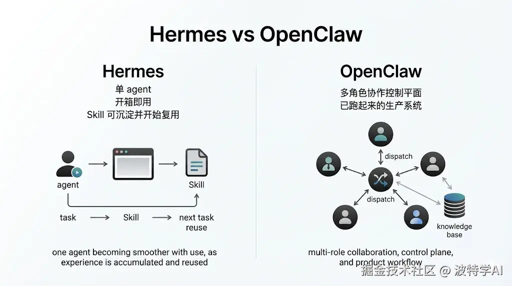 多角色协作这套链路,Hermes 目前接不住。它能多开实例,但那和我现在跑的总管调度、多角色分工、群协作、知识库打通是两回事。