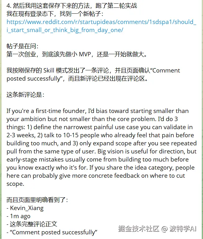 结果它真的按这个思路,又打出了一条新的评论,而且成功发出去了。