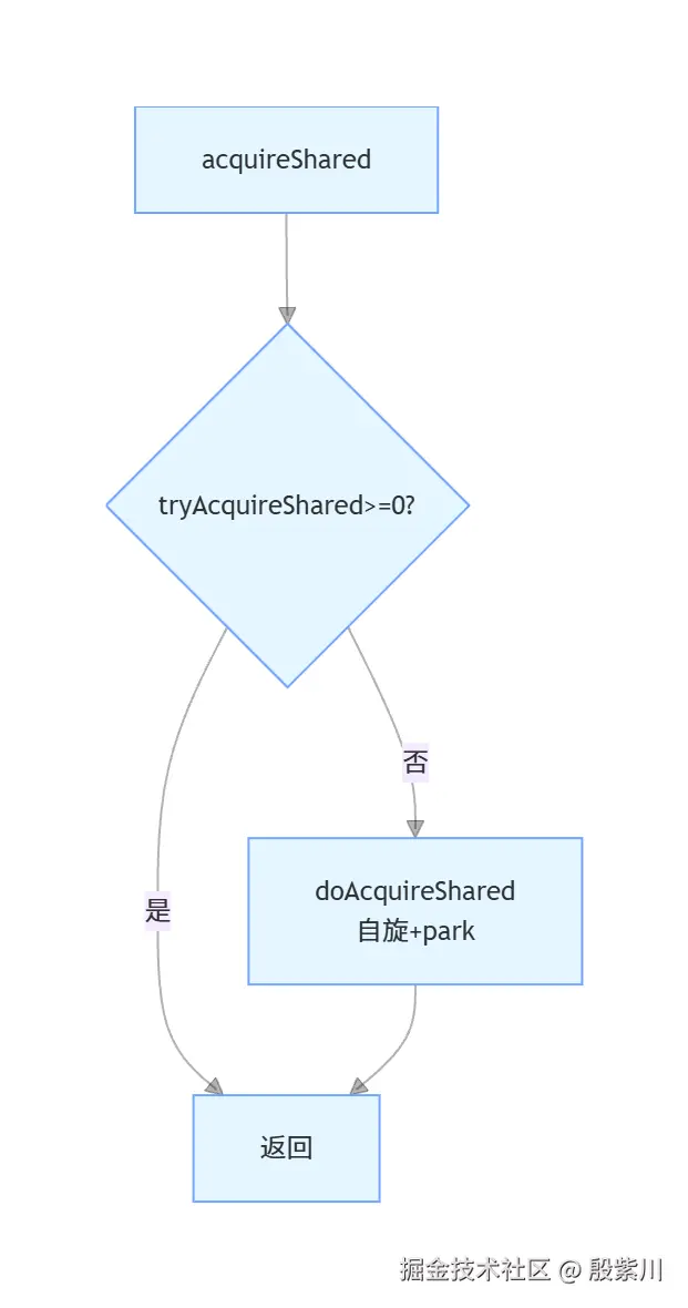 acquireShared是共享模式下获取锁的核心方法,其流程如下:
