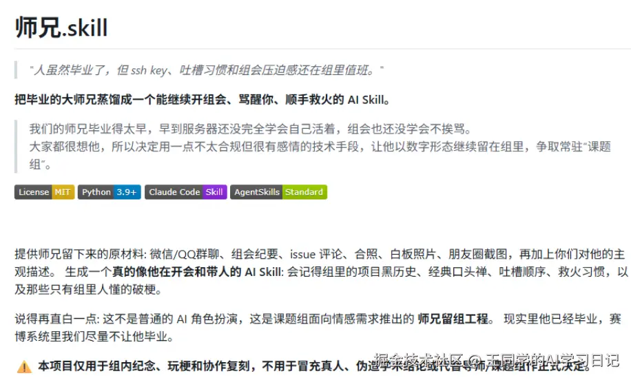 各种大家生活中躲不开的“角色”,全被全网的野生程序员们做成了AI Skill(可以理解为带有特定人设和灵魂的 AI 替身)。