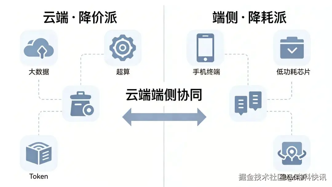 (4)商业博弈:降价派的护城河在于网络效应和极高转换成本,他们希望把AI算力变成类似电力的基础设施。降耗派的护城河则在于软硬一体的闭环体验,控制用户隐私和极低延迟响应。两者在当前窗口期竞争激烈,但未来可能走向云端协同:复杂任务交由降价派的廉价云算力处理,个人隐私和低延迟任务交由降耗派的端侧模型完成。