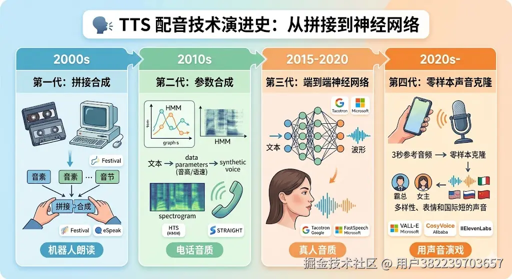 TTS配音技术演进史:从拼接到神经网络