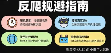 头条问答对爬虫有基础限制,若爬取过快会出现验证码、IP 封禁,以下是实用反爬策略: