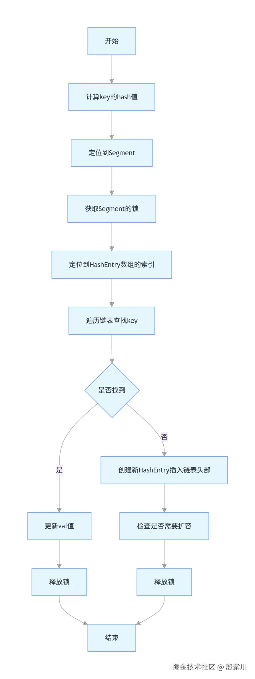key,直接更新val;若未找到,创建新HashEntry插入链表头部。 - 检查