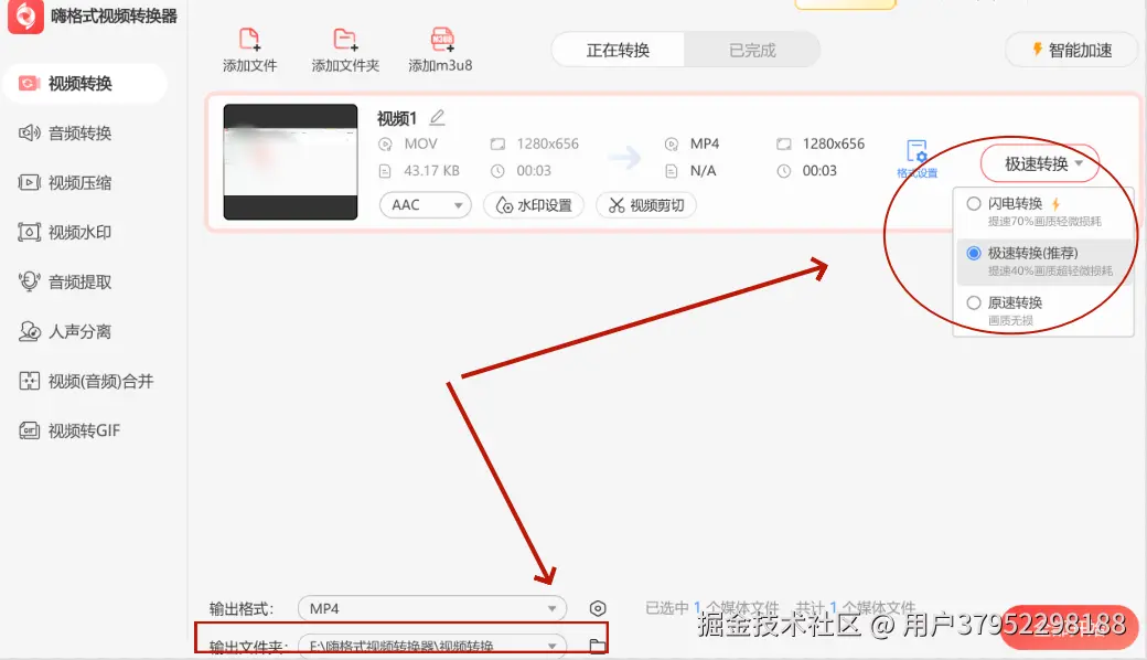 步骤4,设置文件夹的保存位置,然后根据需要选择适合的转换速度进行转换。