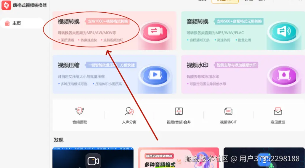 步骤1,打开嗨格式视频转换器,在主页中选择“视频转换”功能。