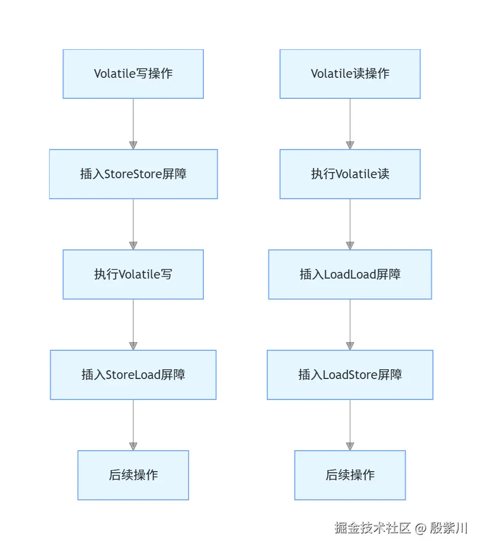 在这四种屏障中,StoreLoad是最“全能”的,它同时具有其他三种屏障的作用,但开销也最大,因为它需要将写缓冲区中的数据全部刷新到主内存,同时 invalidate 读缓冲区。