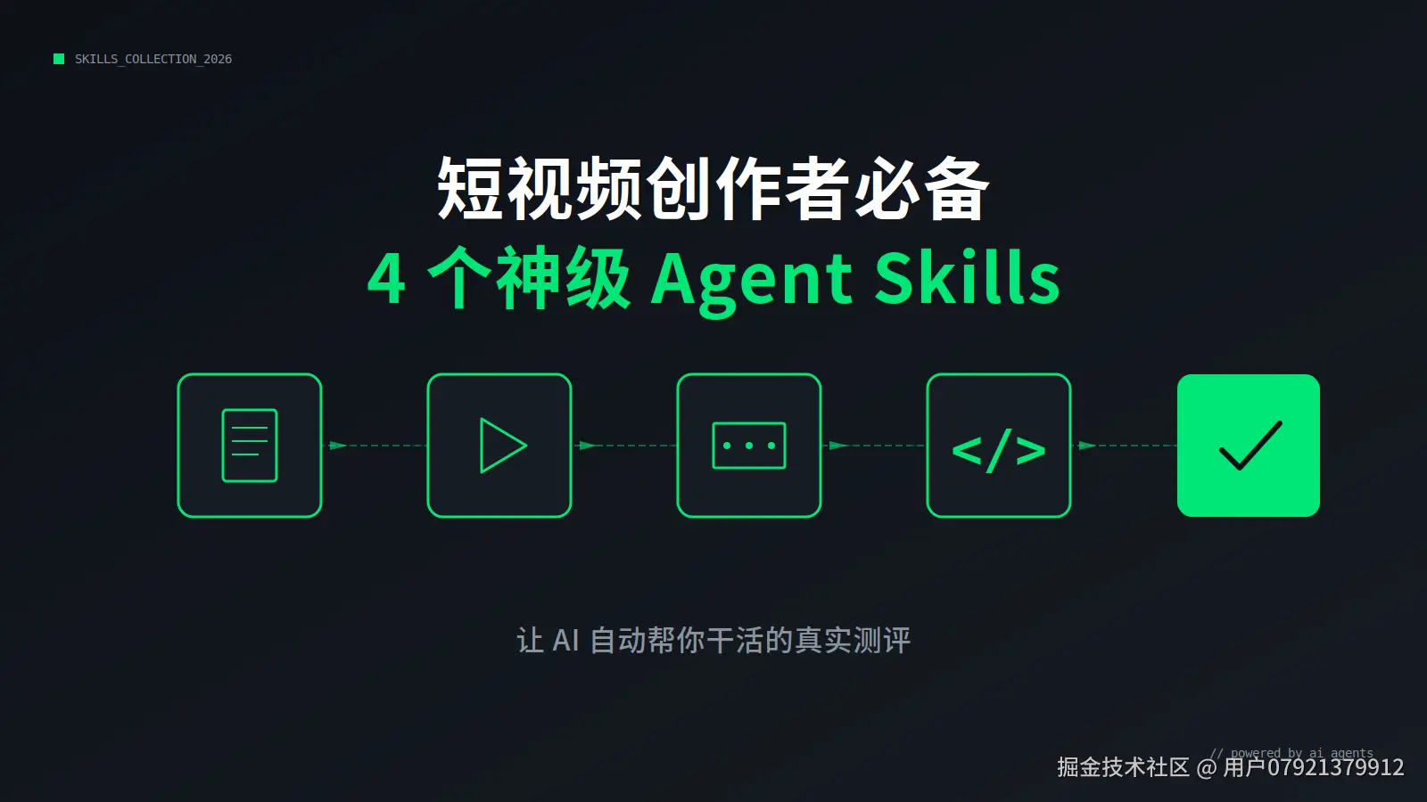 短视频创作者亲测:4 个真正能让 AI 帮你做视频的 Agent Skills