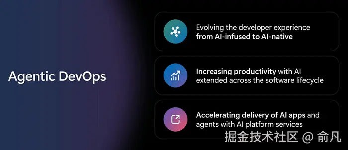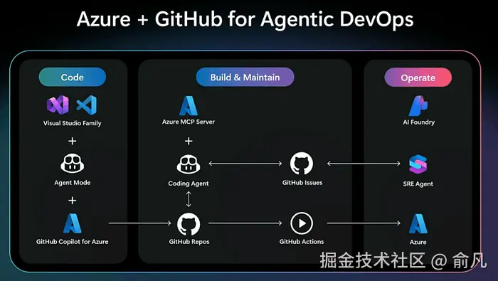 从 AI 增强转向 AI 原生。 不是将 AI 作为次要功能硬塞到现有工具上,而是将智能体直接嵌入工作流、IDE、仓库和运维仪表盘中。它们理解 Azure 上下文、订阅资源、部署目标和故障响应流程。