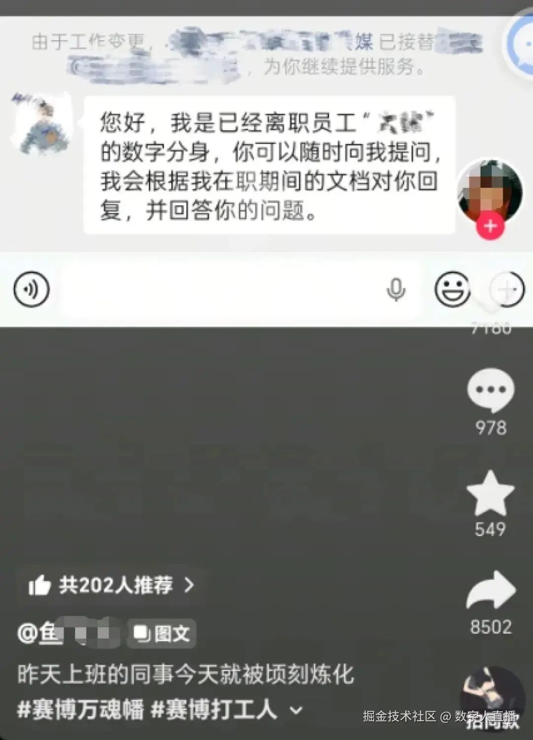 这个“炼化同事”的项目,不仅冲上了社交平台热搜,更让无数打工人破防了。网友调侃:这怎么不算另外一种形式的赛博永生呢?还有人质疑,员工多年积累的工作经验、个人数据,凭什么被公司拿去商业牟利?