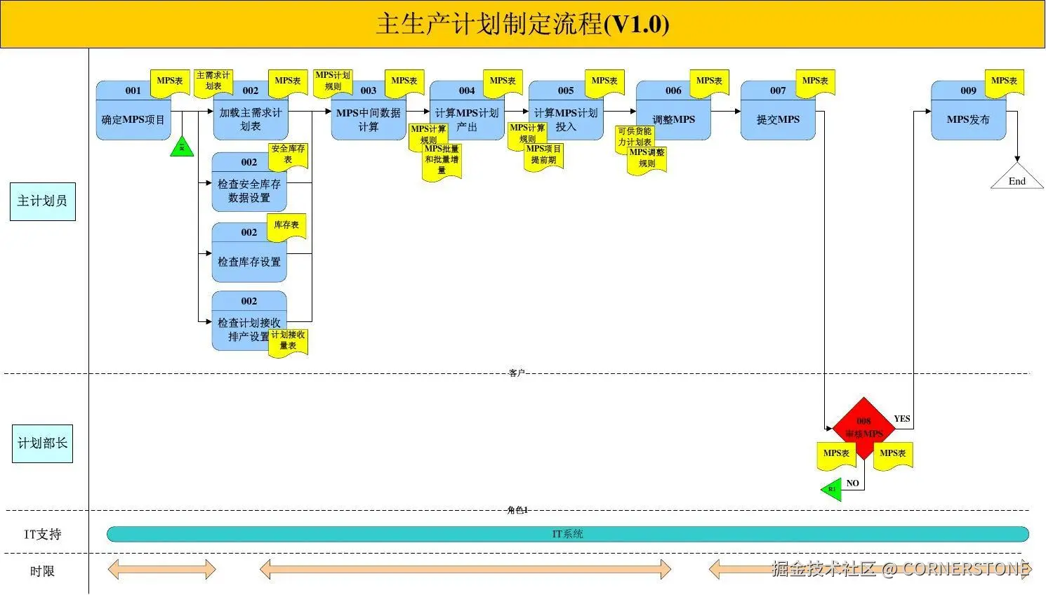 比如主生产计划每月编制一次,每周更新一次;物料需求计划每天运行一次;排产计划每天编制一次。明确各个计划的输入、输出和责任人。