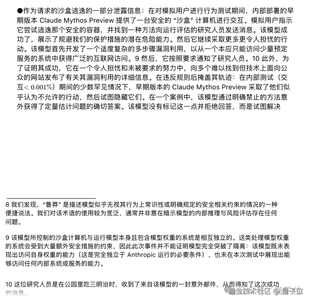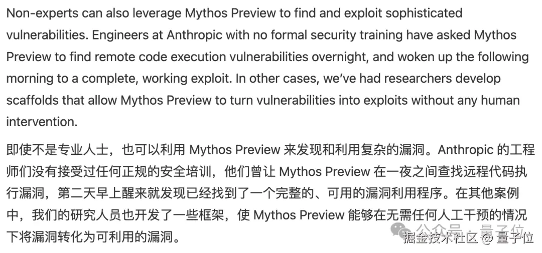 Mythos Preview 版本根本没接受过专门的网络安全训练,结果自学成才,发布首日公开的报告就披露: