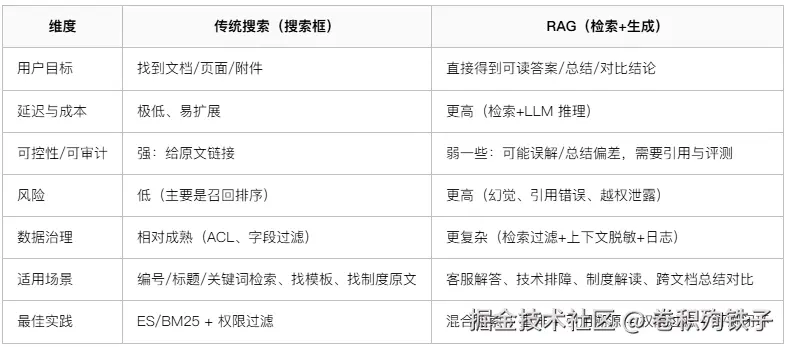 因为 RAG 存在推理成本和响应延迟的问题。在某些纯粹为了“找文件”而非“总结答案”的简单场景,传统搜索依然具备极致的效率优势。