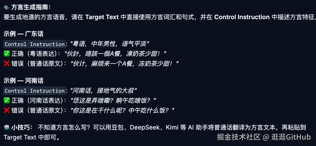 说到方言这里多提一句,用的时候有个小技巧:你输入的文本得是方言本身的表达方式,不能拿普通话文本让它强行读出方言味道。