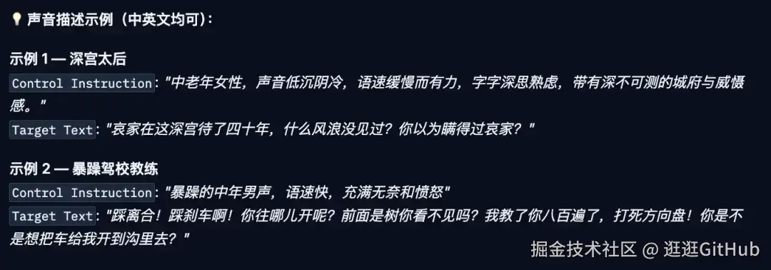 操作也很简单,在控制指令里用自然语言描述你想要的声音就行,不需要任何特殊格式。