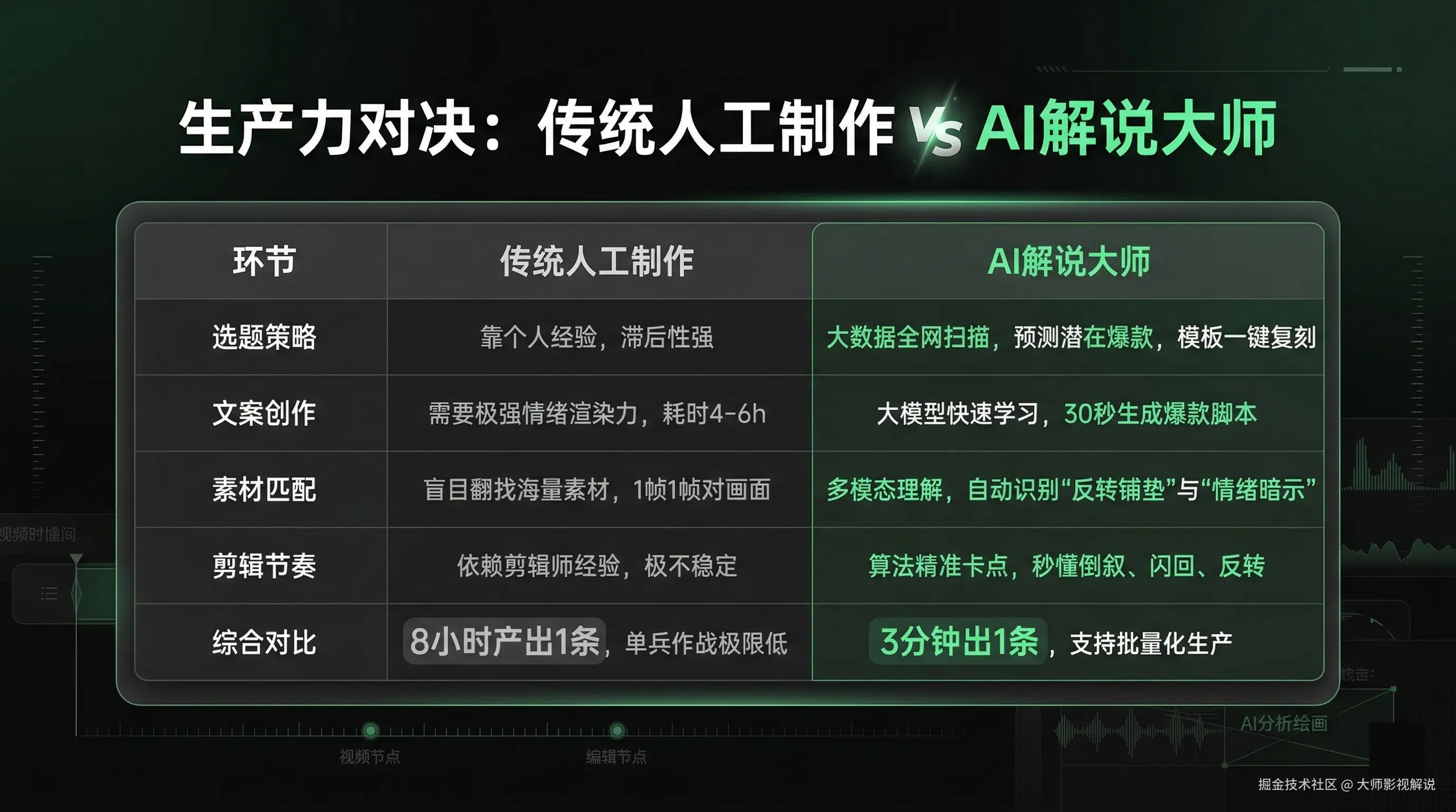 对自媒体创作者来说,最大的价值是你终于可以一个人做恐怖片解说了。过去这件事基本是工作室的专利,因为个人根本扛不住素材处理的工作量。现在你可以把素材处理交给工具,自己专注在选题、文案和风格上。