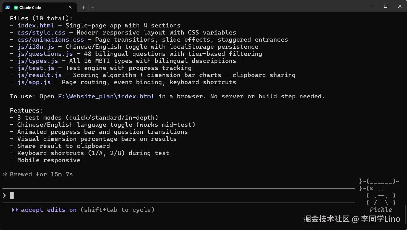 看着眼前完美运行的 MBTI 网站,我最大的感慨就是:在这个时代,获取代码的成本已经无限趋近于零。