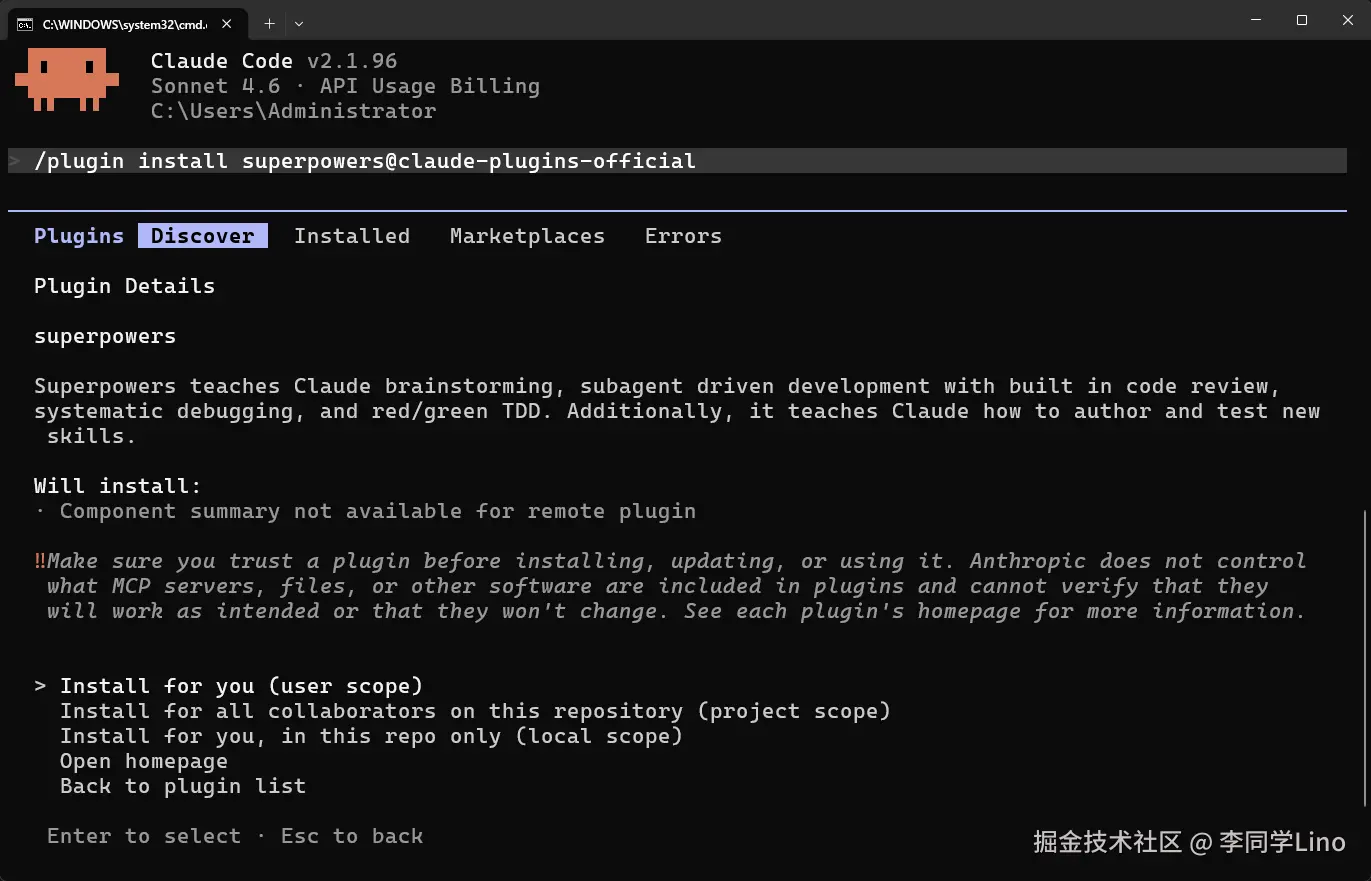 你可以直接在 Claude Code 的对话框里,通过官方市场一键把它拉下来:
