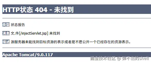5. 验证无文件落地:删除 injectServlet.jsp 文件,再次访问 http://localhost:8080/injectServlet.jsp 显示 404: